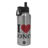 I Love ΝΟΝΟΣ, Μεταλλικό παγούρι θερμός Silver με καλαμάκι και χερούλι (Stainless steel), διπλού τοιχώματος, 950ml