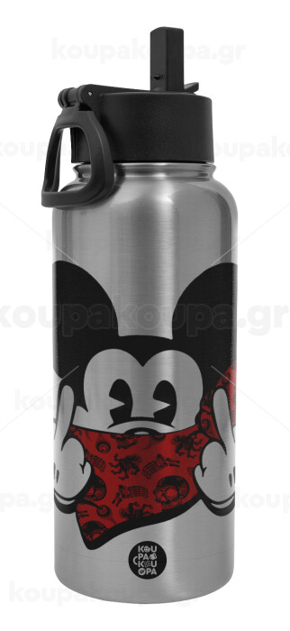 Mickey the fingers, Μεταλλικό παγούρι θερμός Silver με καλαμάκι και χερούλι (Stainless steel), διπλού τοιχώματος, 950ml