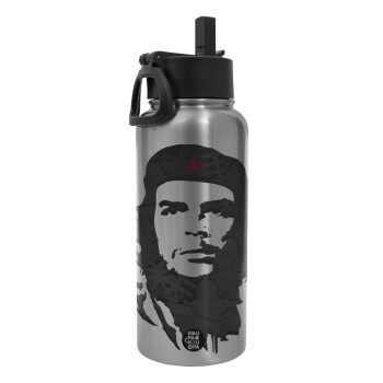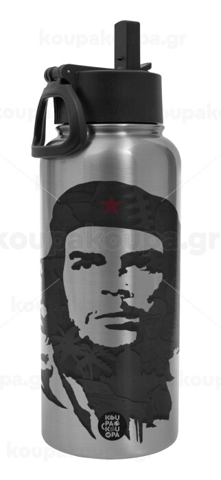 Che Guevara, Μεταλλικό παγούρι θερμός Silver με καλαμάκι και χερούλι (Stainless steel), διπλού τοιχώματος, 950ml