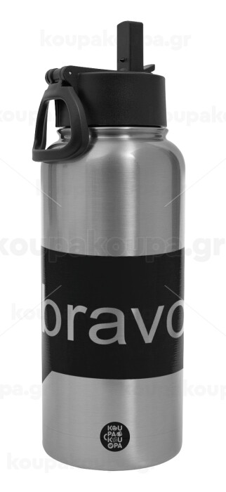 Bravo, Μεταλλικό παγούρι θερμός Silver με καλαμάκι και χερούλι (Stainless steel), διπλού τοιχώματος, 950ml