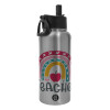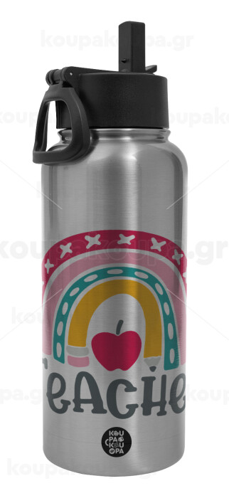 Rainbow teacher, Μεταλλικό παγούρι θερμός Silver με καλαμάκι και χερούλι (Stainless steel), διπλού τοιχώματος, 950ml