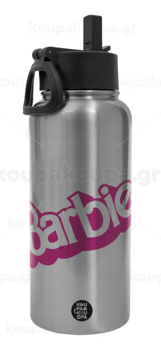 Barbie, Μεταλλικό παγούρι θερμός Silver με καλαμάκι και χερούλι (Stainless steel), διπλού τοιχώματος, 950ml