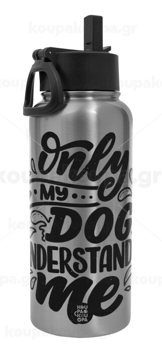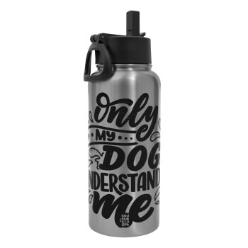 Only my DOG, understands me, Μεταλλικό παγούρι θερμός Silver με καλαμάκι και χερούλι (Stainless steel), διπλού τοιχώματος, 950ml