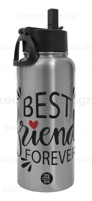 Best Friends forever, Μεταλλικό παγούρι θερμός Silver με καλαμάκι και χερούλι (Stainless steel), διπλού τοιχώματος, 950ml