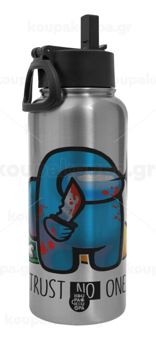 Among Trust no one, Μεταλλικό παγούρι θερμός Silver με καλαμάκι και χερούλι (Stainless steel), διπλού τοιχώματος, 950ml