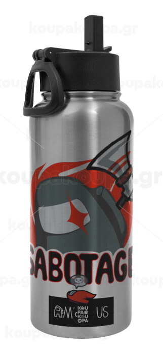 Among US Sabotage, Μεταλλικό παγούρι θερμός Silver με καλαμάκι και χερούλι (Stainless steel), διπλού τοιχώματος, 950ml