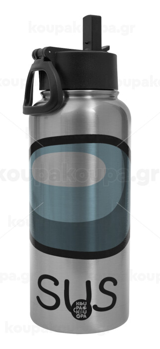 Among US SUS!!!, Μεταλλικό παγούρι θερμός Silver με καλαμάκι και χερούλι (Stainless steel), διπλού τοιχώματος, 950ml