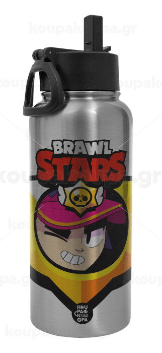 Brawl Stars Fang, Μεταλλικό παγούρι θερμός Silver με καλαμάκι και χερούλι (Stainless steel), διπλού τοιχώματος, 950ml