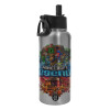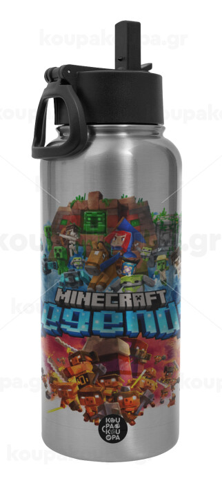 Minecraft legends, Μεταλλικό παγούρι θερμός Silver με καλαμάκι και χερούλι (Stainless steel), διπλού τοιχώματος, 950ml