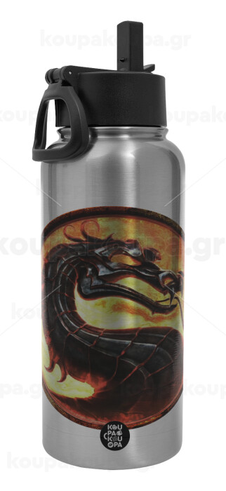 Mortal Kombat, Μεταλλικό παγούρι θερμός Silver με καλαμάκι και χερούλι (Stainless steel), διπλού τοιχώματος, 950ml