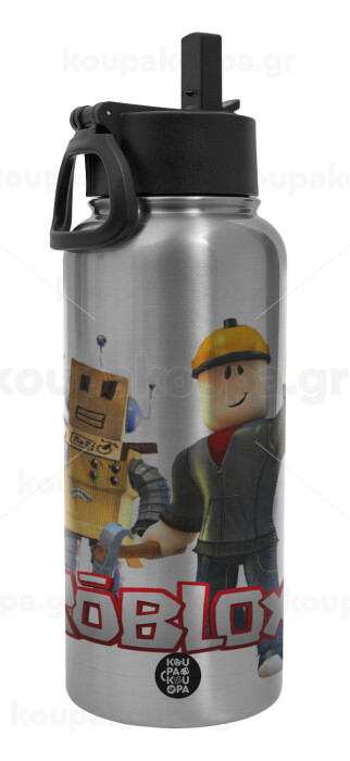 Roblox, Μεταλλικό παγούρι θερμός Silver με καλαμάκι και χερούλι (Stainless steel), διπλού τοιχώματος, 950ml