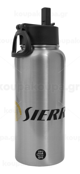 SIERRA, Μεταλλικό παγούρι θερμός Silver με καλαμάκι και χερούλι (Stainless steel), διπλού τοιχώματος, 950ml