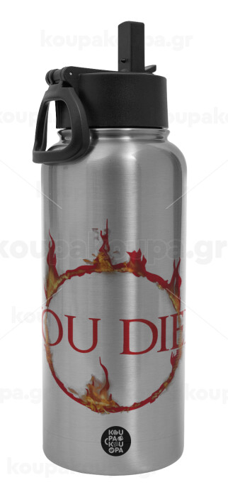 You Died | Dark Souls, Μεταλλικό παγούρι θερμός Silver με καλαμάκι και χερούλι (Stainless steel), διπλού τοιχώματος, 950ml