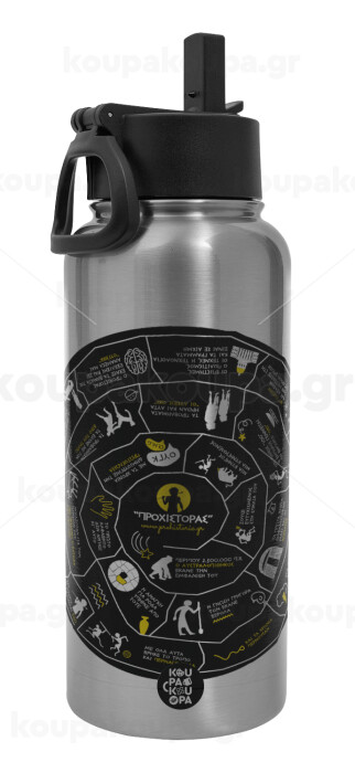 Προχίστορας, Μεταλλικό παγούρι θερμός Silver με καλαμάκι και χερούλι (Stainless steel), διπλού τοιχώματος, 950ml