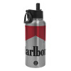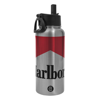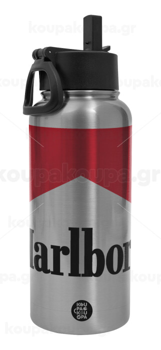 Marlboro, Μεταλλικό παγούρι θερμός Silver με καλαμάκι και χερούλι (Stainless steel), διπλού τοιχώματος, 950ml