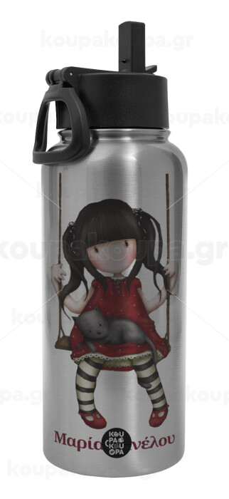 Santoro, Μεταλλικό παγούρι θερμός Silver με καλαμάκι και χερούλι (Stainless steel), διπλού τοιχώματος, 950ml