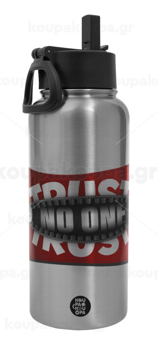 Trust no one... (zipper), Μεταλλικό παγούρι θερμός Silver με καλαμάκι και χερούλι (Stainless steel), διπλού τοιχώματος, 950ml