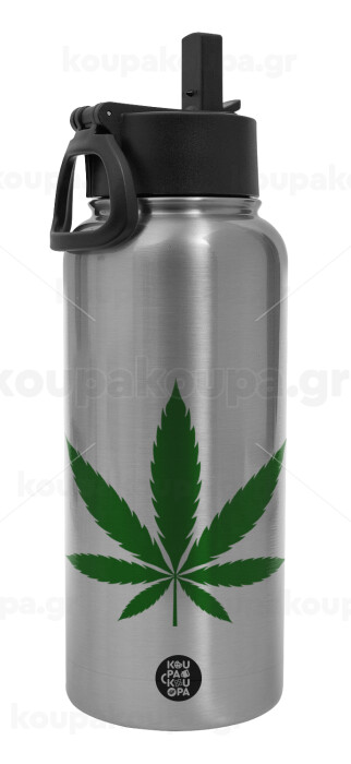Weed, Μεταλλικό παγούρι θερμός Silver με καλαμάκι και χερούλι (Stainless steel), διπλού τοιχώματος, 950ml