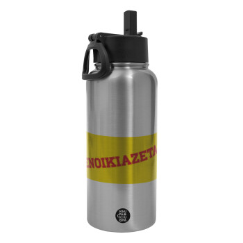 ΕΝΟΙΚΙΑΖΕΤΑΙ, Μεταλλικό παγούρι θερμός Silver με καλαμάκι και χερούλι (Stainless steel), διπλού τοιχώματος, 950ml