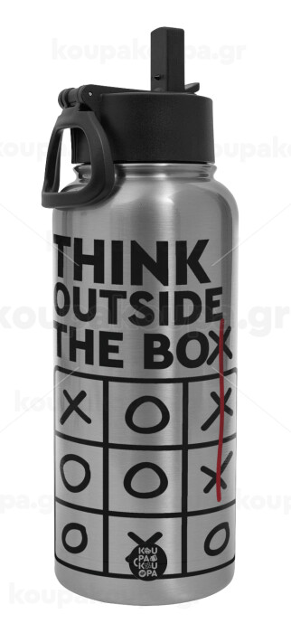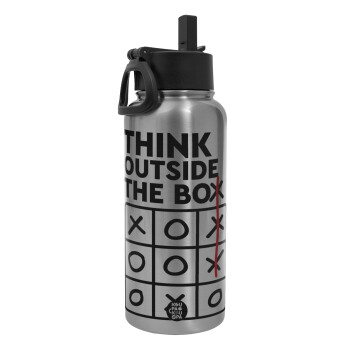 Think outside the BOX, Μεταλλικό παγούρι θερμός Silver με καλαμάκι και χερούλι (Stainless steel), διπλού τοιχώματος, 950ml