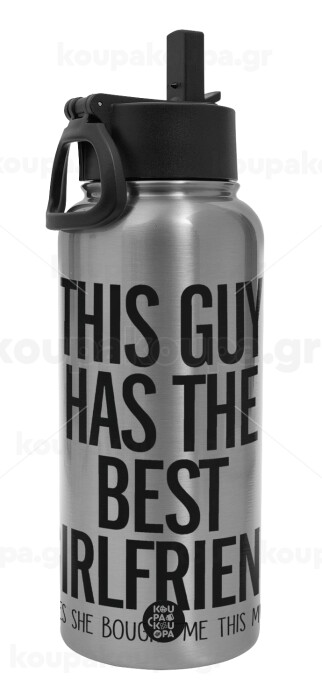 This guy has the best Girlfriend, Μεταλλικό παγούρι θερμός Silver με καλαμάκι και χερούλι (Stainless steel), διπλού τοιχώματος, 950ml