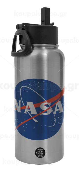 Nasa, Μεταλλικό παγούρι θερμός Silver με καλαμάκι και χερούλι (Stainless steel), διπλού τοιχώματος, 950ml