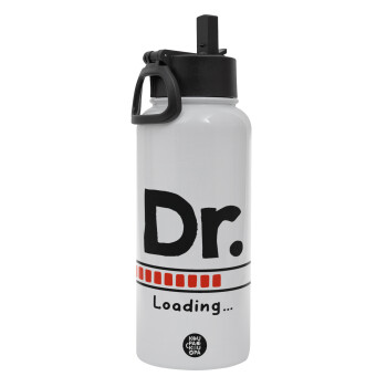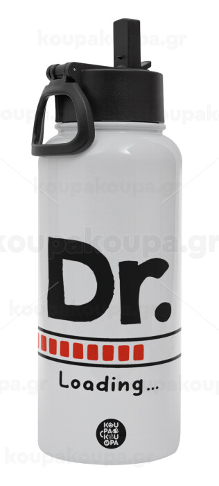 DR. Loading..., Μεταλλικό παγούρι θερμός Λευκό με καλαμάκι και χερούλι (Stainless steel), διπλού τοιχώματος, 950ml