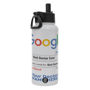 Searching for Best Doctor Ever..., Μεταλλικό παγούρι θερμός Λευκό με καλαμάκι και χερούλι (Stainless steel), διπλού τοιχώματος, 950ml