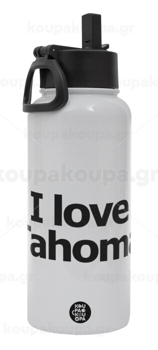 I love Tahoma, Μεταλλικό παγούρι θερμός Λευκό με καλαμάκι και χερούλι (Stainless steel), διπλού τοιχώματος, 950ml