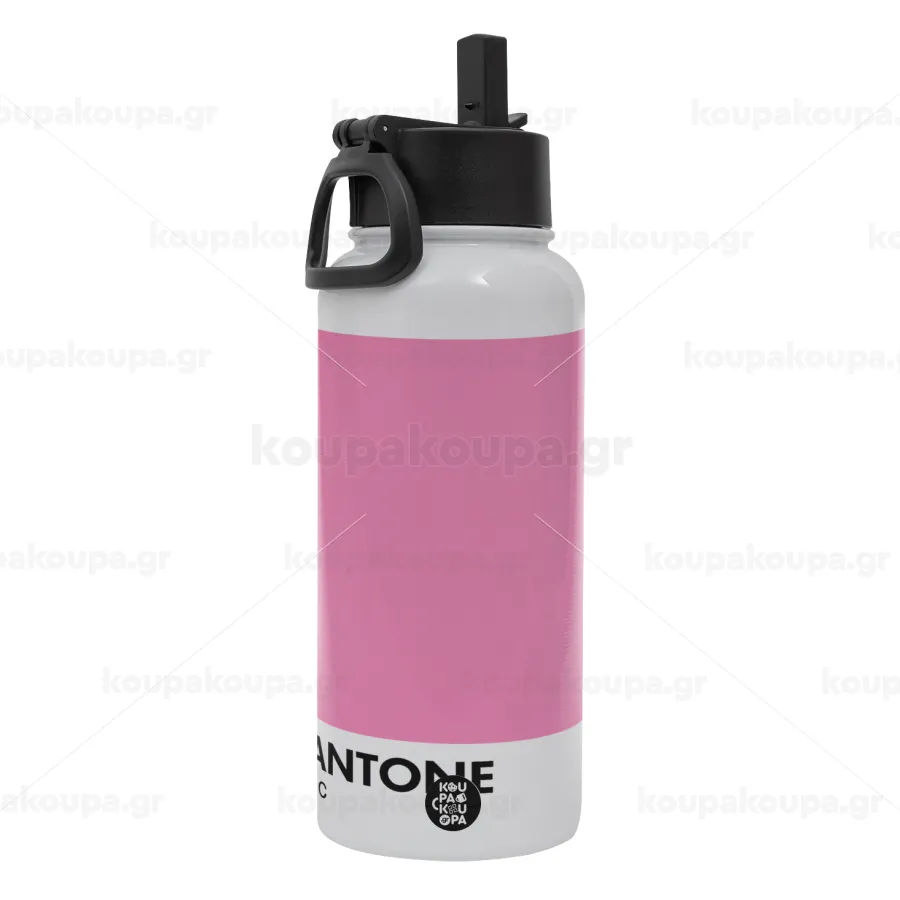 PANTONE Pink C, Μεταλλικό παγούρι θερμός Λευκό με καλαμάκι και χερούλι (Stainless steel), διπλού τοιχώματος, 950ml