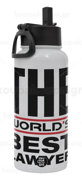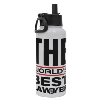 The world's best Lawyer, Μεταλλικό παγούρι θερμός Λευκό με καλαμάκι και χερούλι (Stainless steel), διπλού τοιχώματος, 950ml