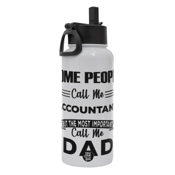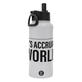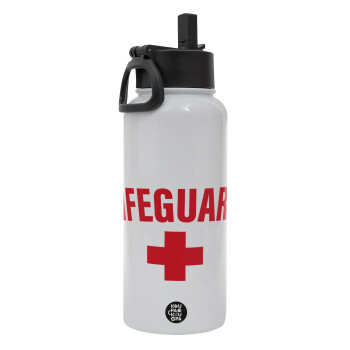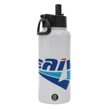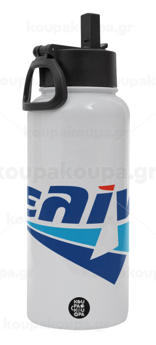 Πρατήριο καυσίμων ΕΛΙΝ, Μεταλλικό παγούρι θερμός Λευκό με καλαμάκι και χερούλι (Stainless steel), διπλού τοιχώματος, 950ml