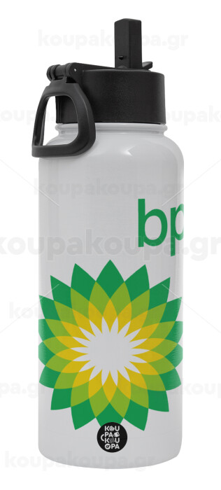 Πρατήριο καυσίμων BP, Μεταλλικό παγούρι θερμός Λευκό με καλαμάκι και χερούλι (Stainless steel), διπλού τοιχώματος, 950ml