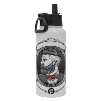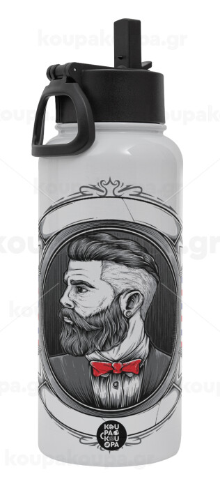 Barber shop, Μεταλλικό παγούρι θερμός Λευκό με καλαμάκι και χερούλι (Stainless steel), διπλού τοιχώματος, 950ml