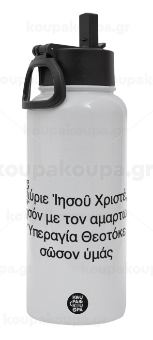 Προσευχή του Ιησού, Μεταλλικό παγούρι θερμός Λευκό με καλαμάκι και χερούλι (Stainless steel), διπλού τοιχώματος, 950ml