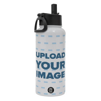 Το δικό σου σχέδιο, Μεταλλικό παγούρι θερμός Λευκό με καλαμάκι και χερούλι (Stainless steel), διπλού τοιχώματος, 950ml