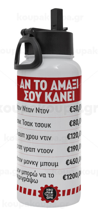 Annoying Noise in Car, Μεταλλικό παγούρι θερμός Λευκό με καλαμάκι και χερούλι (Stainless steel), διπλού τοιχώματος, 950ml