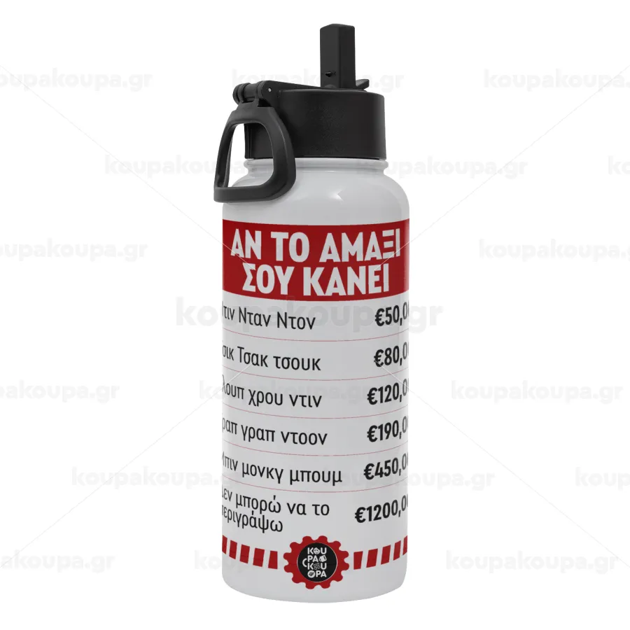 Annoying Noise in Car, Μεταλλικό παγούρι θερμός Λευκό με καλαμάκι και χερούλι (Stainless steel), διπλού τοιχώματος, 950ml