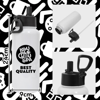HONDA, Μεταλλικό παγούρι θερμός Λευκό με καλαμάκι και χερούλι (Stainless steel), διπλού τοιχώματος, 950ml