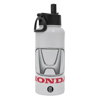 HONDA, Μεταλλικό παγούρι θερμός Λευκό με καλαμάκι και χερούλι (Stainless steel), διπλού τοιχώματος, 950ml