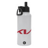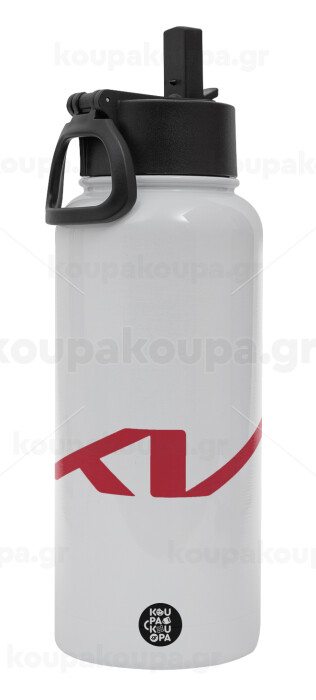 KIA, Μεταλλικό παγούρι θερμός Λευκό με καλαμάκι και χερούλι (Stainless steel), διπλού τοιχώματος, 950ml