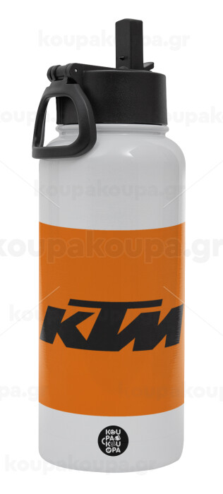 KTM, Μεταλλικό παγούρι θερμός Λευκό με καλαμάκι και χερούλι (Stainless steel), διπλού τοιχώματος, 950ml