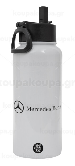 Mercedes small logo, Μεταλλικό παγούρι θερμός Λευκό με καλαμάκι και χερούλι (Stainless steel), διπλού τοιχώματος, 950ml