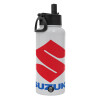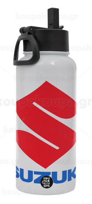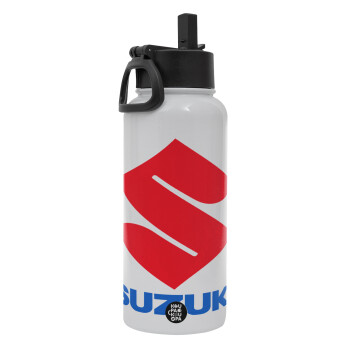 SUZUKI, Μεταλλικό παγούρι θερμός Λευκό με καλαμάκι και χερούλι (Stainless steel), διπλού τοιχώματος, 950ml