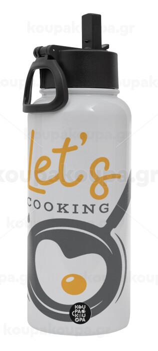 Let's cooking, Μεταλλικό παγούρι θερμός Λευκό με καλαμάκι και χερούλι (Stainless steel), διπλού τοιχώματος, 950ml