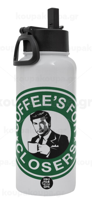 Coffee's for closers, Μεταλλικό παγούρι θερμός Λευκό με καλαμάκι και χερούλι (Stainless steel), διπλού τοιχώματος, 950ml