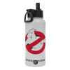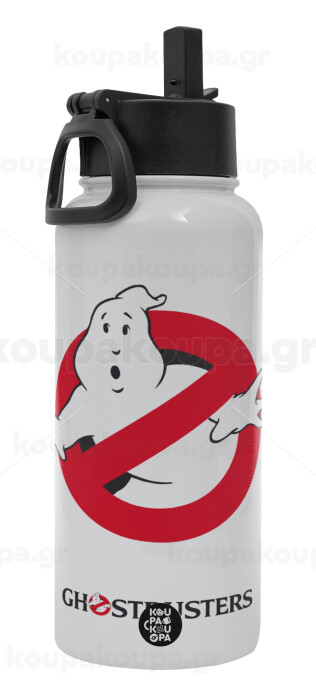 Ghostbusters, Μεταλλικό παγούρι θερμός Λευκό με καλαμάκι και χερούλι (Stainless steel), διπλού τοιχώματος, 950ml