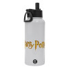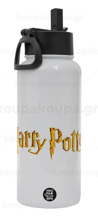 Harry potter movie, Μεταλλικό παγούρι θερμός Λευκό με καλαμάκι και χερούλι (Stainless steel), διπλού τοιχώματος, 950ml