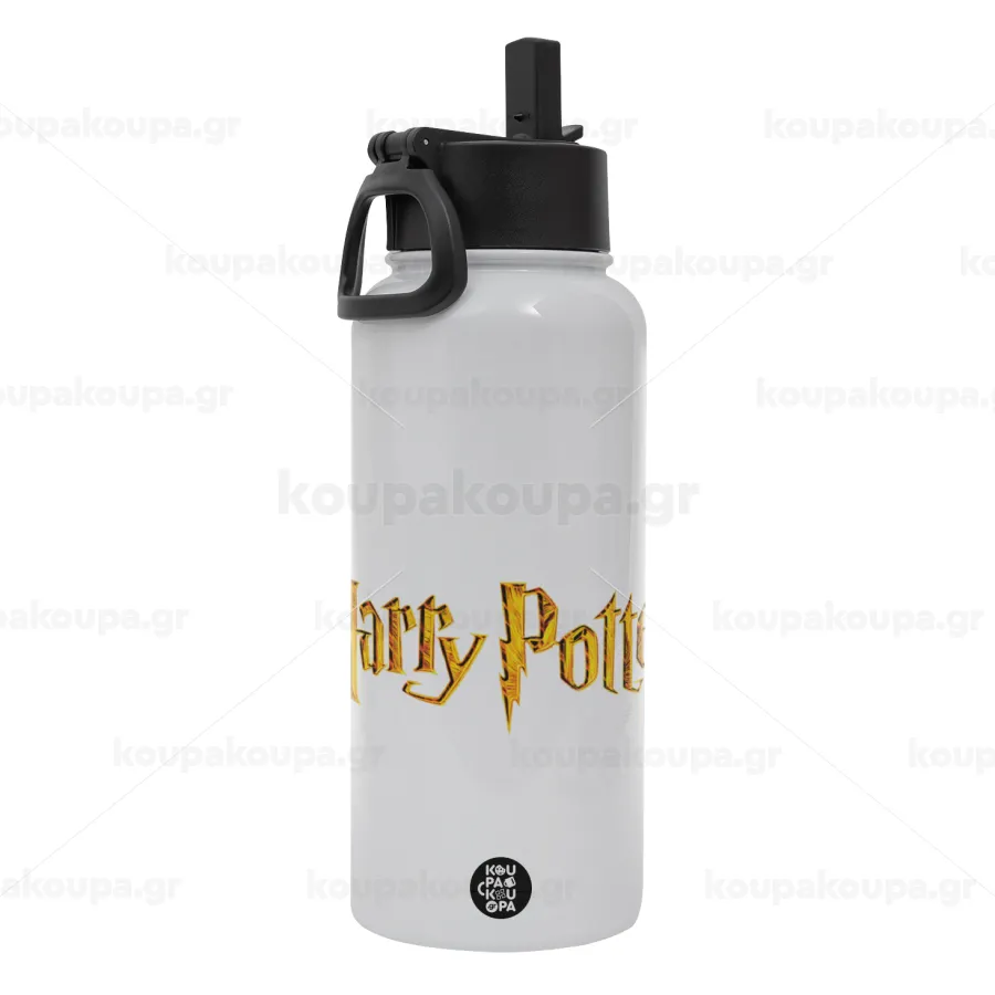 Harry potter movie, Μεταλλικό παγούρι θερμός Λευκό με καλαμάκι και χερούλι (Stainless steel), διπλού τοιχώματος, 950ml