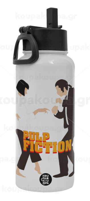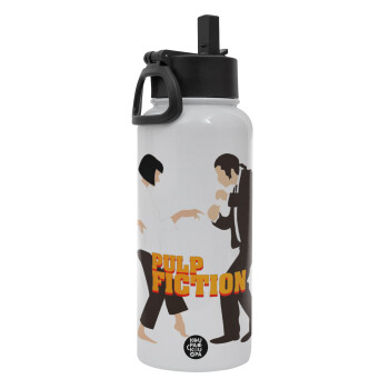 Pulp Fiction dancing, Μεταλλικό παγούρι θερμός Λευκό με καλαμάκι και χερούλι (Stainless steel), διπλού τοιχώματος, 950ml